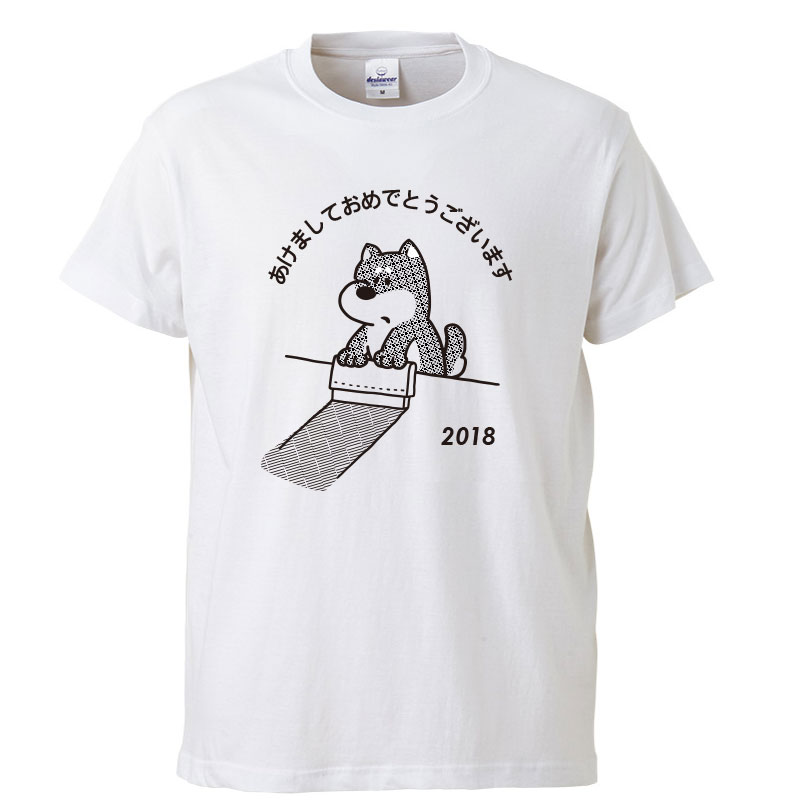 今年は戌年なんで犬がシルクスクリーンをしてるイラストを年賀状にしてみました。